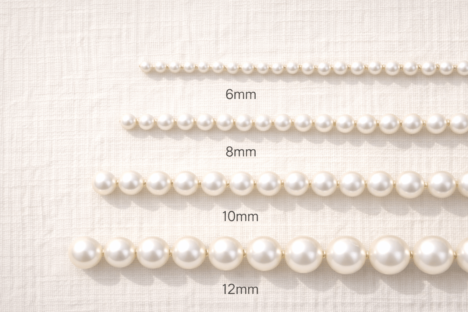 Süßwasserperlen decken einen ähnlichen Bereich ab, gehen aber im oberen Segment weiter. Dank Fortschritten in der Zuchttechnik und bead-nucleated Edison-Perlen erreichen Süßwassergrößen heute 15 mm und mehr. Wenn Sie große Statement-Perlen wollen, ohne Südsee-Preise zu zahlen, ist Süßwasser aktuell ehrlich gesagt die beste Option. Der Bereich 7,5–10 mm ist am beliebtesten für Süßwasserketten und Sets und bietet starken visuellen Impact zu erschwinglichen Preisen.