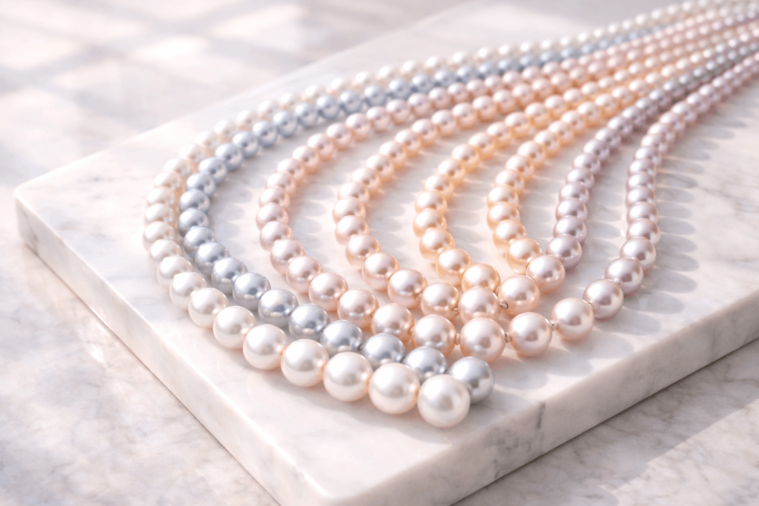 Die Farboptionen unterscheiden sich deutlich. Akoya-Perlen kommen natürlich in Weiß, Silber-Blau, Blau und gelegentlich in sanftem Gold und Pistazie vor. Die klassische Wahl ist Weiß mit Rosé-Überton – der zeitlose Look, den die meisten sich vorstellen, wenn sie an „Perlenkette“ denken. Schwarze Akoya-Perlen gibt es, sind aber farbbehandelt, nicht natürlich – das sollte man beim Kauf bedenken.
