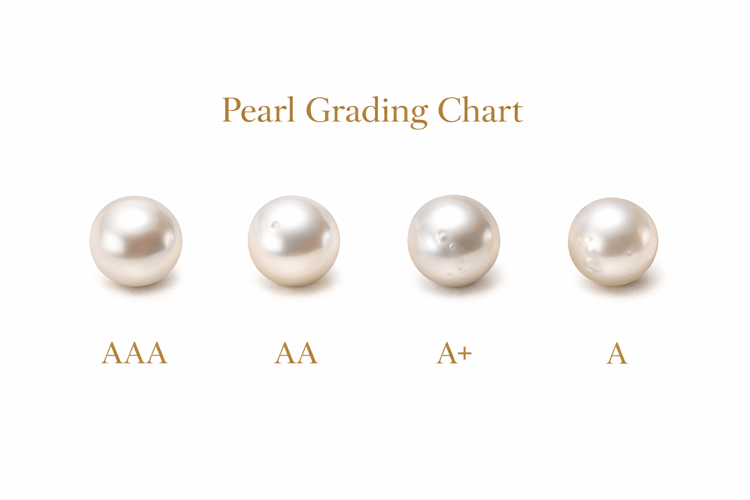 Ähnlich verwendet PearlsOnly A bis AAA für Akoya. Bei Süßwasser- und Exoten-Perlen jedoch A bis AAAA für mehr Detailtiefe. Das System orientiert sich ziemlich eng an den sieben Wertfaktoren der GIA. Oberflächenqualität, Glanz, Perlmuttschicht, Übereinstimmung – alles klar definiert. Außerdem geben sie echte Spezifikationen statt nur Buchstaben. Dadurch versteht man, was die Grade wirklich bedeuten.