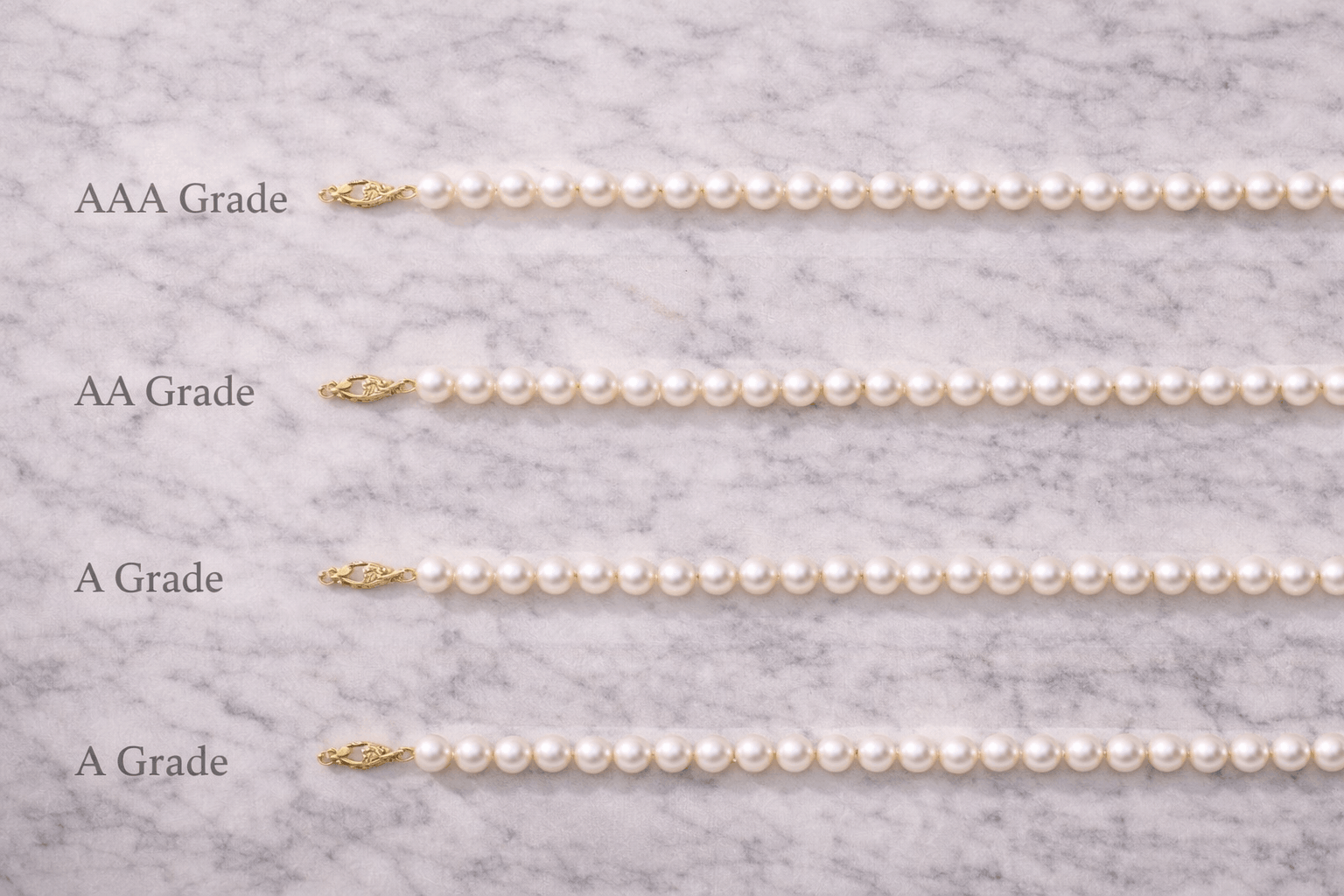 AAA-Qualität steht für die höchste kommerziell verfügbare Qualität. Nahezu perfekte Oberfläche mit minimalen Fehlern nur unter Vergrößerung sichtbar. Exzellenter spiegelartiger Glanz mit scharfen, hellen Reflexen. Diese Perlen wirken wirklich premium. Definitiv lohnt es sich, für eine AAA Perlenkette VAE mehr auszugeben, wenn du Investment-Stücke möchtest.
