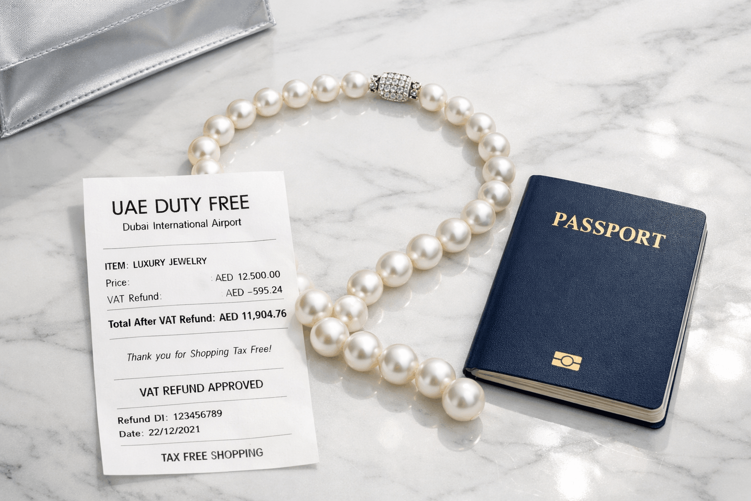 Die VAE bieten steuerfreies Shopping bei Schmuck. Keine Mehrwertsteuer. Keine Umsatzsteuer. Das bedeutet deutlich niedrigere Preise als in Europa oder anderen Regionen mit 15–25 % Steuern. Dein Geld geht in das Produkt, nicht in Steuern.